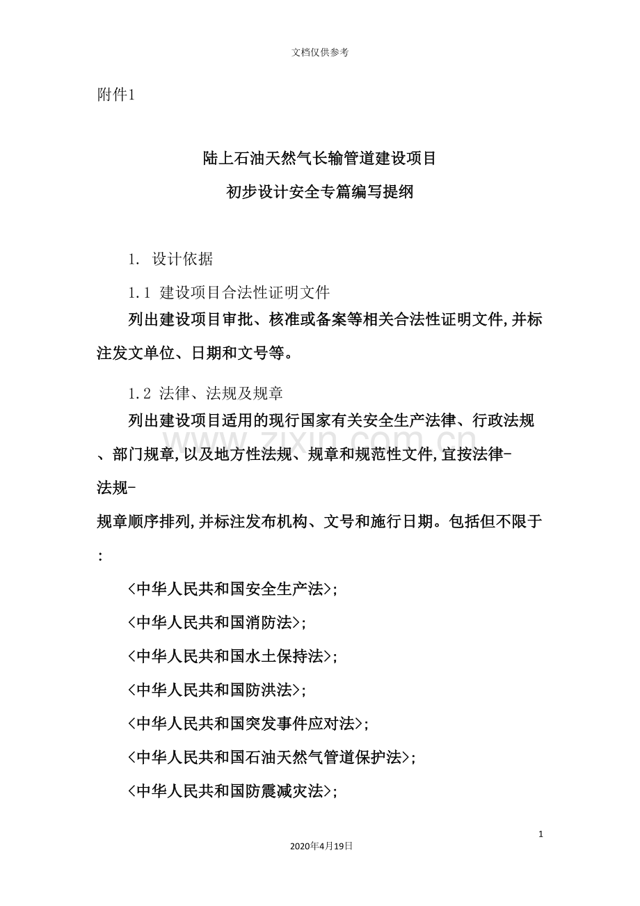 初步设计安全专篇编写提纲格式模板