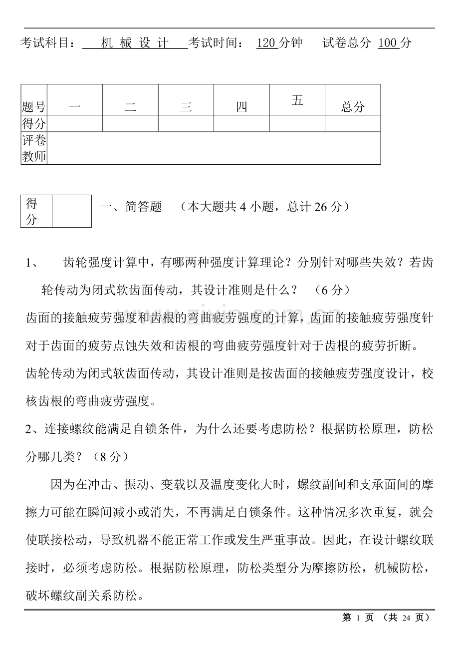 考试科目: 机 械 设 计 考试时间: 120分钟 试卷总分 100分