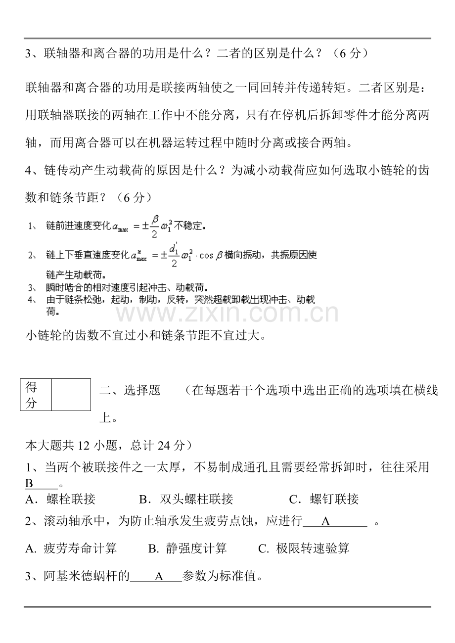 5基孔,基轴 6静应力,变应力,循环变应力 7三角形螺纹,梯形螺纹,锯齿形螺纹