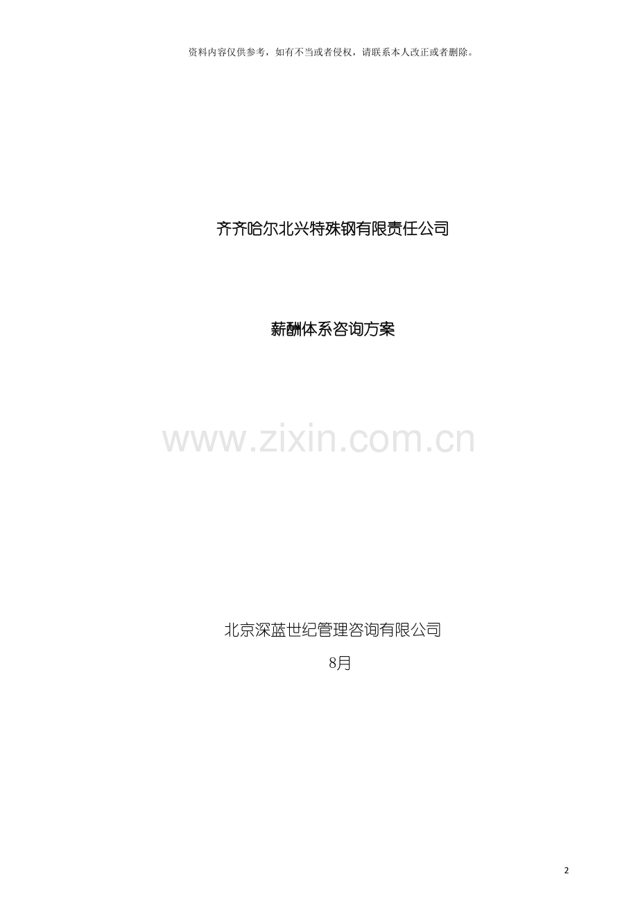 作为北京深蓝世纪管理咨询有限公司(以下简称”深蓝公司”)为齐齐哈尔北兴特殊钢有限公司(以下简称”北兴特钢”)实施人力资源管理咨询的一个部分, 薪酬设计将直接影响到未来企业运作的基础, 良好的薪酬体系能够激发员工的生产积极性, 提高劳动效率, 增强企业的凝聚力和活力。