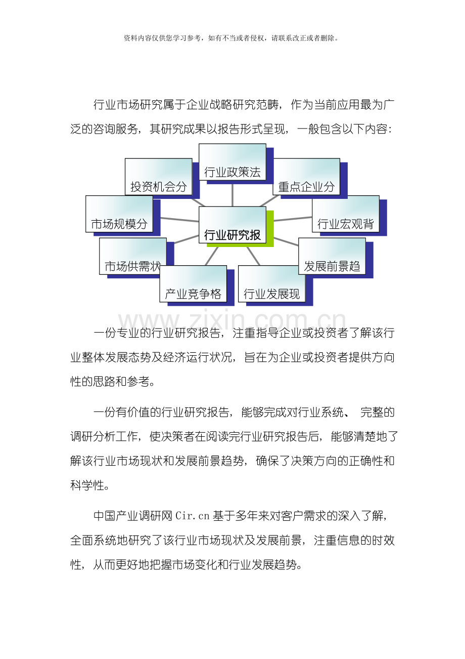 一份专业的行业研究报告, 注重指导企业或投资者了解该行业整体发展态势及经济运行状况, 旨在为企业或投资者提供方向性的思路和参考。