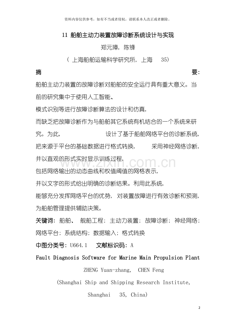 关键词: 船舶、 舰船工程; 主动力装置; 故障诊断; 神经网络; 网络平台; 系统结构; 数据输入; 格式转换