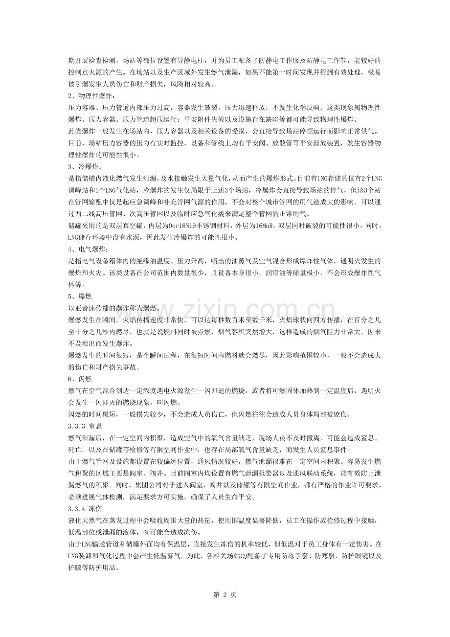 3)物理性爆炸,储罐、管线超过承受的压力;平安附件〔平安阀〕不能按规定启跳;设备设施存在缺陷或受到外力作用等情况都有可能使天然气产生物理性爆炸。