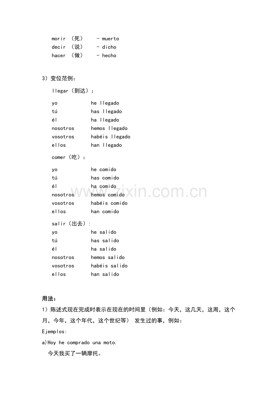 陈述式现在完成时是复合时态,由助动词haber 的人称形式与实义动词的过去分词构成。过去分词是动词的无人称形式之一。