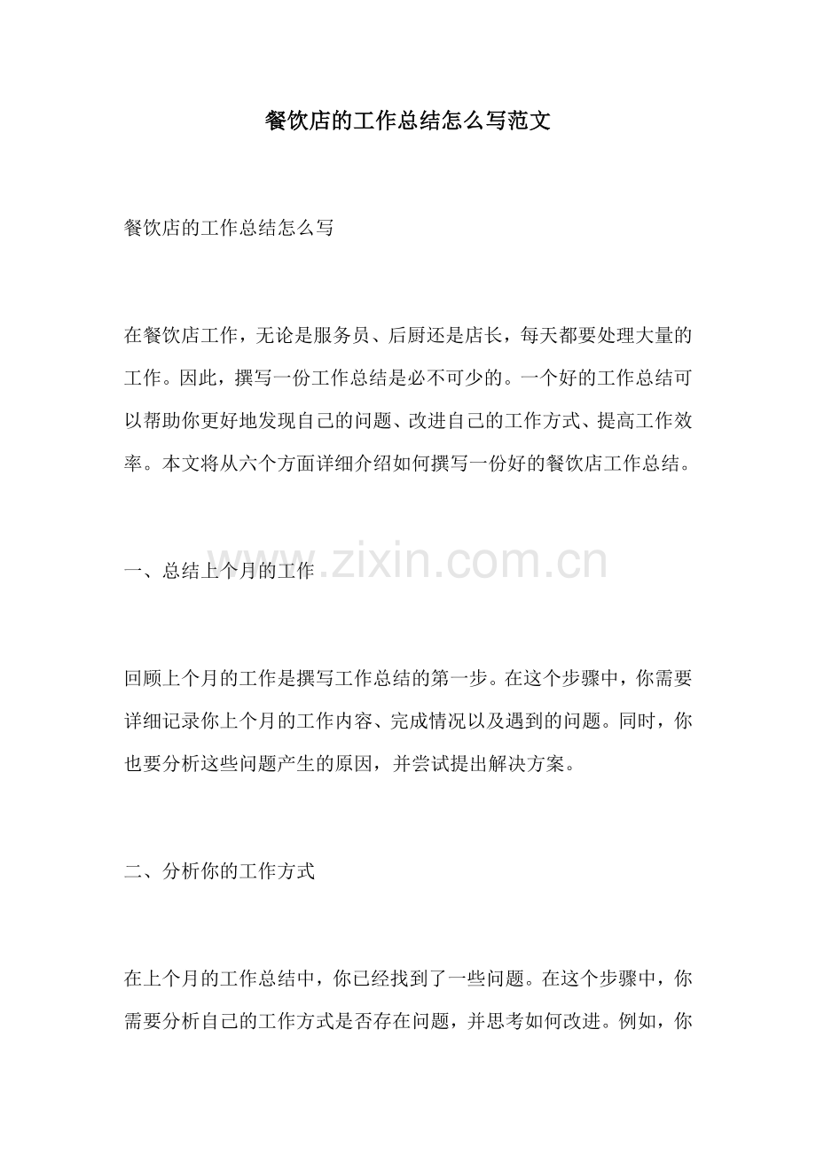 餐饮店的工作总结怎么写