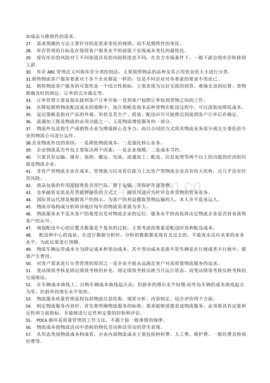 31.销售物流客户服务要素对于各个企业都是一样的,仅是不同企业对各要素的要求不用而已。