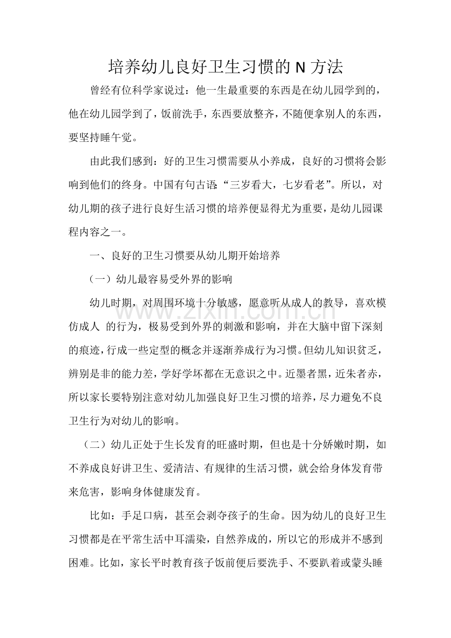 曾经有七十多位诺贝尔奖金获得者在巴黎集会,有人问一位获奖者:“您在哪所大学,哪个实验室学到了您认为最主要的东西?”出乎意料,这位白发苍苍的学者回答:“在幼儿园。”“在幼儿园学到些什么?”学者答:“把自己的东西分一半给小伙伴,不是自己的东西不要拿;东西要放整齐;吃饭前要洗手;做错了事要表示道歉;要仔细观察周围的大自然。从根本上说,我学到的东西就是这些。”这位学者的话代表了到会的科学家的普遍看法,也说明一个道理:好的生活卫生习惯需从小养成,良好的习惯将会影响到他们的终身。那么,幼儿园作为幼儿步入社会的第一步,通过哪些途径来培养幼儿良好生活卫生习惯呢?