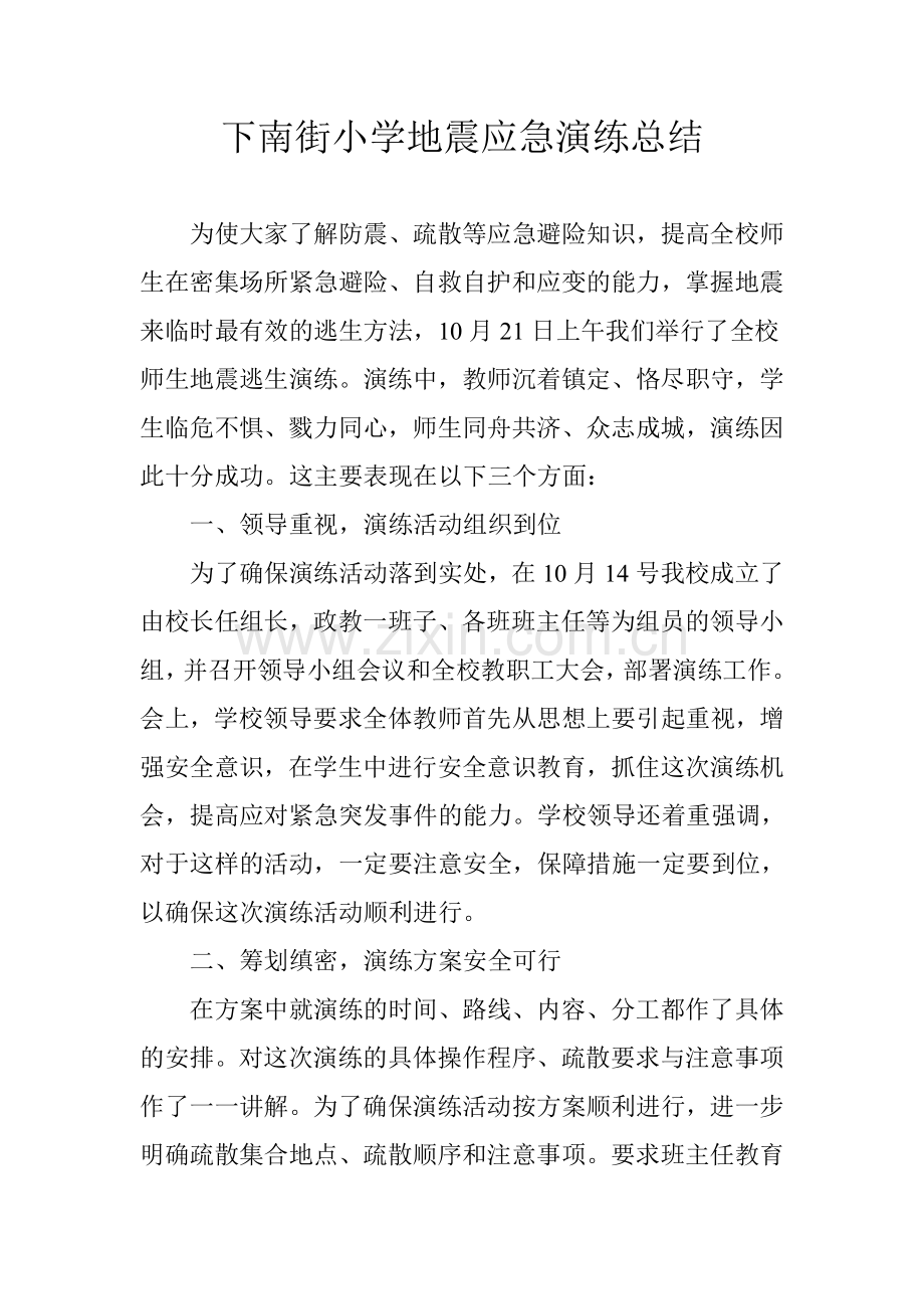 下南街小学地震应急演练总结