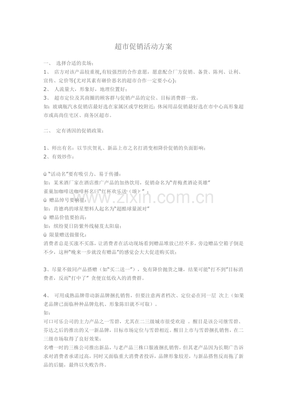 如:玻璃瓶汽水促销店最好选在家属区或学校附近;休闲用品促销最好选在市中心高形象超市或高尚住宅区、商务区超市。
