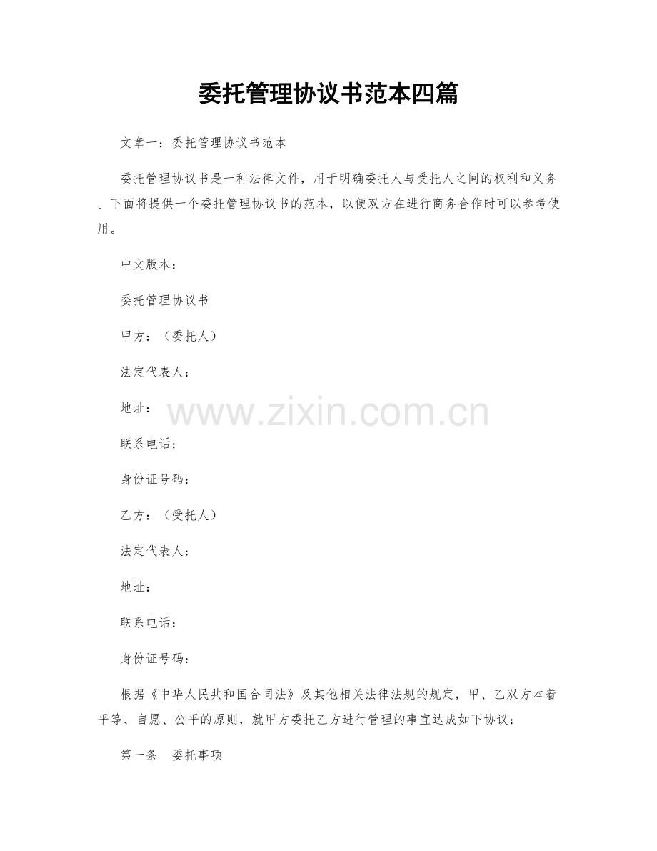 以上是委托管理协议书的范本样式,双方在签订协议前应认真阅读,并可根据实际情况进行调整和修改,以确保协议内容符合双方意愿并具有法律效力。希望以上内容对您有所帮助。