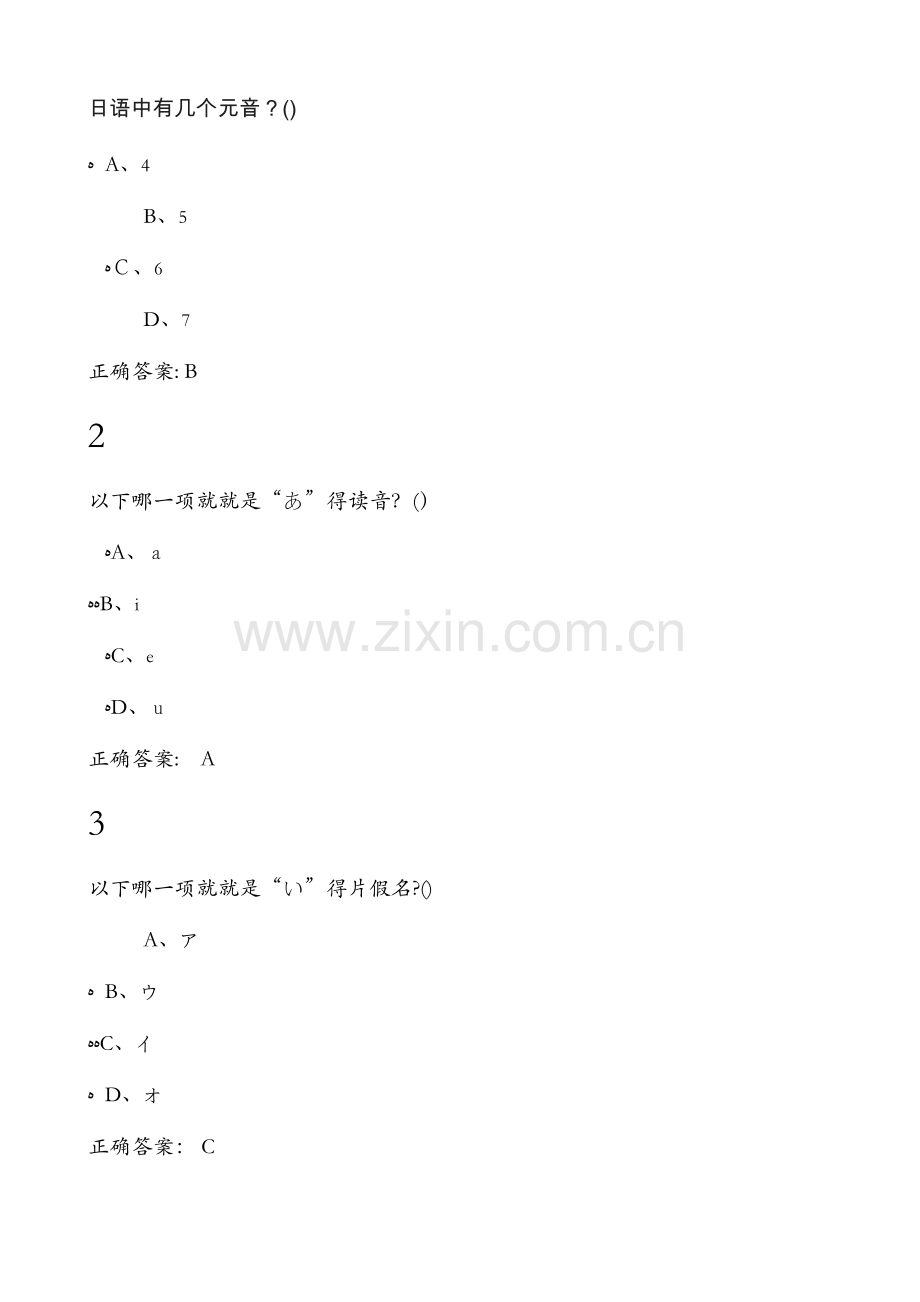 日语中有几个元音?()