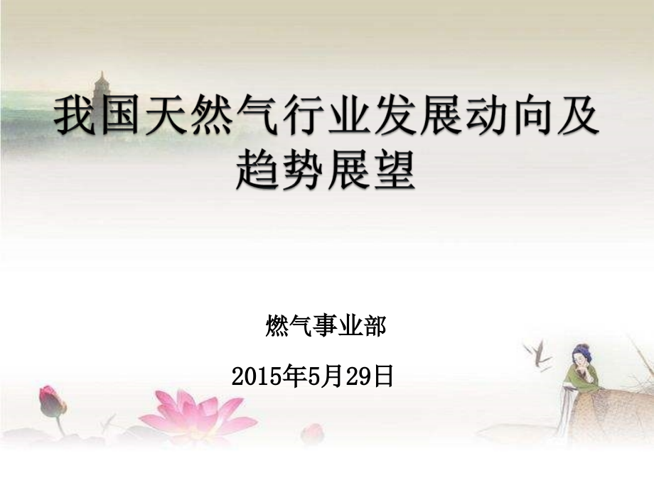 <p>,单击此处编辑母版标题样式,单击此处编辑母版文本样式,第二级,第三级,第四级,第五级,燃气,事业,部,2015,年,5,月,29,日,济南能源建设发展有限公司,前言,二十一世纪被誉为天然气时代,谁掌握天然气资源,谁就掌握了经济可持续发展的先机。根据国际天然气联盟的一项调查,近几年天然气产量年均增长率为,2.5%,,高于同期原油产量的增长速度。,2012,年,全世界的天然气消耗量约为,33144,亿,m,3,,到,2030,年,预计世界天然气的年消耗量将会翻一番,可达到,64000,亿,m,3,。国际各权威机构预测,,2030,年天然气占世界能源消费的比例将达到,35%-40%,,成为世界第一大能源。,世界天然气探明可采储量,179.53,10,12,m,3,,储采比,66.7,,天然气储量仍保持较高的增长速度,可供全世界用七十多年。水和天然气组成的类冰的结晶化合物,俗称可燃冰,大量贮藏在永久冻土带和海洋中,天然气水合物的开发利用可能改变世界能源结构,可用数百年。,一、天然气基础知识,1.1,定义:,天然气是一种多组分的混合气体,主要成分是烷烃,其中甲烷占绝大多数,另有少量的乙烷、丙烷和丁烷,此外一般还含有硫化氢、二氧化碳、氮和水气,以及微量的惰性气体,如氦和氩等,。,1.2,物理性质:,相对分子质量:,16.063,,无色无味,沸点,-161.52,(绝压下),相对密度:,0.5539,(标况下),密度:,0.6785kg/m,。,1.3,分类,致密气(,Tight Gas,)是指渗透率小于,0.1 md,的砂岩地层天然气,。,煤层气是指储存在煤层中以甲烷为主要成分、以吸附在煤基质颗粒表面为主、部分游离于煤孔隙中或溶解于煤层水中的烃类气体,是煤的伴生矿产资源,属非常规天然气。,页岩气是蕴藏于,页,岩,层,可供开采的,天然气,资源,,中国的页岩气可采储量居,世界,首位,。,页岩气的形成和富集有着自身独特的特点,往往分布在,盆地,内厚度较大、分布广的页岩,烃源岩,地层中。较,常规天然气,相比,页岩气开发具有,开采,寿命,长,和,生产周期,长,的优点,大部分产气页岩,分布,范围,广,、,厚度,大,,且普遍含气,这使得页岩气井能够长期地以稳定的速率产气。,天然气,水合物(简称,Gas Hydrate,)是分布于深海,沉积物,或陆域的,永久冻土,中,由,天然气,与,水,在高压低温条件下形成的类冰状的结晶物质。因其外观像冰一样而且遇火即可燃烧,所以又被称作,“,可燃冰,”,或者,“,固体,瓦斯,”,和,“,气冰,”,。,煤层气、页岩气和常规气分布示意图,1.4,主要用途,二、我国天然气发展现状,2.1,我国天然气发展历程,我国天然气发展较晚,能源使用以煤炭和石油为主。国家管理层参考了国外的发展经验和我国国情,制定了一系列政策条例,以期提高天然气与替代能源的竞争力,规范天然气市场,促进天然气的快速发展。因此,现阶段国内天然气工业主要呈现出政策引导、垄断经营、国家管制和供应驱动的特点。,2.1.1,政策引导,2004,年,在,能源中长期规划纲要,2004-2020,年,中,管理层首次明确提出了大力发展天然气,提高天然气在一次能源中比例的目标。之后,先后出台了多项支持措施。可以看到,国家管理层对于天然气的发展规划是长期性和前瞻性的,其对天然气的支持在短期内不会改变。,同时,天然气利用政策,的出台也反映了国家管理层对于天然气使用结构的重视。国家对于优先发展城市天然气态度仍将继续。,国内天然气相关政策,时间,名称,主要内容,2004.6.30,能源中长期发展规划纲要(,20042020,年),(草案),提高天然气在一次能源中的比例,力争在,2010,年达到,5.3%,,,2020,年达到,8-10%,2006.3.16,国民经济和社会发展十一五规划纲要,加快天然气管网建设,适时建设第二条西气东输管道及陆路进口油气管道,2007.4.11,能源发展“十一五”规划,建立“西部油气东输、东北油气南送、海上油气登陆”的格局,2007.8.30,天然气利用政策,优化天然气使用结构,优先发展城市燃气,2012.12.3,天然气发展“十二五”规划,提高天然气在一次能源消费中的比重,2012.10.14,新版,天然气利用政策,将天然气应用领域放宽,产业关注点转变为“如何促进天然气产业发展”,2012.3.16,页岩气发展规划(,2011,2015,年),基本完成全国页岩气资源潜力调查与评价,初步掌握全国页岩气资源量及其分布,2.2.2,垄断经营,在我国,无论是天然气的上游开采业、中游运输业,还是下游分销业,都具有垄断经营的特点。对于中上游行业,资源基本集中于中石油、中石化和中海油三家央企,其中中石油占比高达到,80%,,且份额稳定上升。,2.2.3,国家价格管制,在天然气发展初期,为了提高天然气的竞争力,培育天然气市场,国家发改委实行了严格的价格管制,并采用了以成本加成为主的定价机制。,具体地讲,国内天然气价格实行两级管理的定价机制。出厂基准价和管道运输价由国家发改委制定;终端销售价格由省级物价部门制定。定价原则主要采用成本加成为主并适当考虑市场需求。其中为了合理引导下游消费,还将天然气价格分为化肥、直供用户、城市工业用户和城市非工业用户四类,并区别定价。,我国天然气定价机制,我国主要油气田历次价格调整,我国天然气定价一直采取的,“,成本加成法,”,,难以反映市场供求与可替代能源比价,,2011,年在广东和广西试行,“,市场净回值,”,法,所谓,“,市场净回值定价法,”,,是以商品的,市场价值,为基础确定上游供货价格,而商品的市场价值按照竞争性,替代商品,的当量价格决定,最终用户价格按市场价值确定。也就是指将