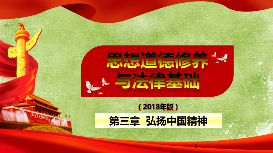 ,*,(,2018,年版),第三章 弘扬中国精神,思想道德修养,与法律基础,1,导入内容,2008,年,5,月,12,日汶川发生里氏震级,8.0,级地震,伴随着一声声汶川告急,北川告急,映秀告急,青川告急,这些穿越北纬,31,的城镇与村庄,牵动着无数人的心。,2,中国精神是兴国强国之魂,知识点:中国精神,爱国主义及其时代要求,知识点:爱国主义的基本内涵,让改革创新成为青春远航的动力,知识点:,主要内容,3,第一节 中国精神是兴国强国之魂,“实现中国梦必须弘扬中国精神。这就是以爱国主义为核心的民族精神,以改革创新为核心的时代精神。这种精神是凝心聚力的兴国之魂、强国之魂。”,习近平,4,一、重精神是中华民族的优秀传统,重精神的表现:,1.,对物质生活与精神生活相互关系的独到理解上;,2.,中国古人对理想的不懈追求上;,5,刘禹锡(公元,772,年,842,年),屈原(约公元前,340,年,公元前,278,年),重精神的表现:,3.,对道德修养和道德教化的重视上;,4.,对理想人格的推崇,6,林则徐,(,1785,年,8,月,30,日,1850,年,11,月,22,日),重视道德修养和道德教化的,“,三不朽,”,思想,推崇理想人格的,“,君子文化,”,时代楷模:,中国共产党是中华民族重精神优秀传统的忠实继承者和坚定弘扬者,7,南仁东,(,1945.2,2017.9.15,),廖俊波,(,1968.8,2017.3.18,),黄大年,(,1958.8.28,2017.1.8,),二、中国精神是民族精神和时代精神的统一,8,中国精神,民族精神,时代精神,价值取向,思维方式,道德规范,精神气质,思想观念,价值取向,精神风貌,社会风尚,民族精神:创造,9,伟大创造精神、伟大奋斗精神、伟大团结精神、伟大梦想精神,九章算术,是中国古代第一部数学专著,成于公元一世纪左右。该书系统总结了战国、秦、汉时期的数学成就。最早提到分数问题,也首先记录了盈不足等问题,在世界数学史上首次阐述了负数及其加减运算法则。,中国文字是历史上最古老的文字之一。也是至今通行的世界上最古老的文字。世界上还没有任何一种文字像汉字这样经久不衰。从甲骨文发展到今天的汉字,已经有数千年的历史。文字的发展经过了金文、大篆、小篆、隶书、草书、楷书、行书等书体演变。,民族精神:奋斗,10,伟大创造精神、伟大奋斗精神、伟大团结精神、伟大梦想精神,大禹治水,中国大运河,民族精神:团结,11,伟大创造精神、伟大奋斗精神、伟大团结精神、伟大梦想精神,民族精神:梦想,中国桥、中国路、中国车、中国港、中国网,一个个圆梦工程铺展宏图。厉害了,我的国!,12,伟大创造精神、伟大奋斗精神、伟大团结精神、伟大梦想精神,时代精神:改革创新,13,2017,年,5,月北京外国语大学丝绸之路研究院发起了一次留学生民间调查。来自,“,一带一路,”,沿线的,20,国青年评选出了他们心目中中国的,“,新四大发明,”,。,三、实现中国梦必须弘扬中国精神,凝聚中国力量的精神纽带;激发创新创造的精神动力;推进复兴伟业的精神定力,14,2017,年,12,月,7,日讯,三代造林人半个多世纪的持续奋斗,让贫瘠沙地变成绿水青山,也获得世界赞誉。,5,日,联合国环境规划署宣布,中国塞罕坝林场建设者获得,2017,年联合国环保最高荣誉,“,地球卫士奖,”,。,第二节 爱国主义及其时代要求,15,爱国,是人世间最深层、最持久的情感,是一个人立德之源、立功之本。孙中山先生说,做人最大的事情,“就是要知道怎么样爱国”。,习近平,一、爱国主义的基本内涵,16,什么是爱国?爱国爱什么?,爱国主义,,是人民群众对自己祖国的深厚感情,反映了个人对祖国的依存关系,是人们对自己故土家园、种族文化的,归属感,、,认同感,、,尊严感,与,荣誉感,的统一。,17,爱祖国的大好河山,爱自己的骨肉同胞,爱祖国的灿烂文化,爱自己的国家,二、新时代的爱国主义,18,(一)坚持爱国主义和社会主义相统一,(二)维护祖国统一和民族团结,(三)尊重和传承中华民族历史和文化,(四)必须坚持立足民族又面向世界,19,虽然科学没有国界,科学家却是有祖国的。正因为祖国贫穷落后,才更需要科学工作者努力去改变她的面貌。,钱三强,“,中国航天之父,”,“,中国导弹之父,”,“,中国近代力学之父,”,“,中国原子弹之父,”,坚持爱国主义和社会主义相统一,20,坚持立足民族又面向世界,40,多年前,,5,万多名中华儿女满怀对非洲人民的真挚情谊来到非洲,同兄弟的坦桑尼亚和赞比亚人民并肩奋斗,在茫茫非洲草原上披荆斩棘,克服千难万险,用汗水和鲜血乃至生命筑成了被誉为友谊之路、自由之路的坦赞铁路。他们中有,60,多人为此献出了宝贵生命,永远长眠在这片远离故乡的土地上。,三、做忠诚爱国者,21,(一)维护和推进祖国统一,(二)促进民族团结,(三)增强国家安全意识,2017,年,01,月,15,日,美统促侨团呛蔡英文借过境搞分裂:台独死路一条,美国,“,旧金山湾区中国统一促进会,”,等团体一早在凯悦酒店对面的人行道上高举五星红旗,大喊,“,一个中国,,One China,,反对台独,”,口号进行示威游行,抗议者近,200,名。,让改革创新成为青春远航的动力,22,青年是国家和民族的希望,创新是社会进步的灵魂,创业是推动经济社会发展、改善民生的重要途径。青年学生富有想象力和创造力,是创新创业的有生力量。,习近平,一、创新创造是中华民族最深沉的民族禀赋,16,世纪以前世界上最重要的,300,项发明和发现中,我国占,173,项,远远超过同时代的欧洲,我国古代在天文历法、数学、农学、医学、地理学等众多