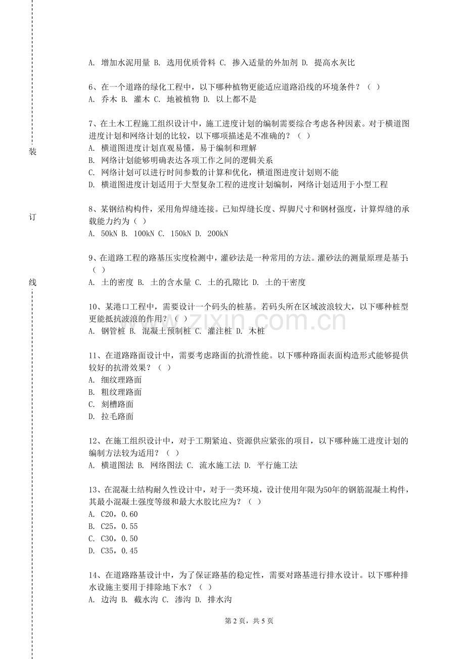 5、某水利工程中,需要设计一个混凝土大坝。在考虑混凝土的抗渗性能时,以下哪种措施可以有效地提高混凝土的抗渗性?( )