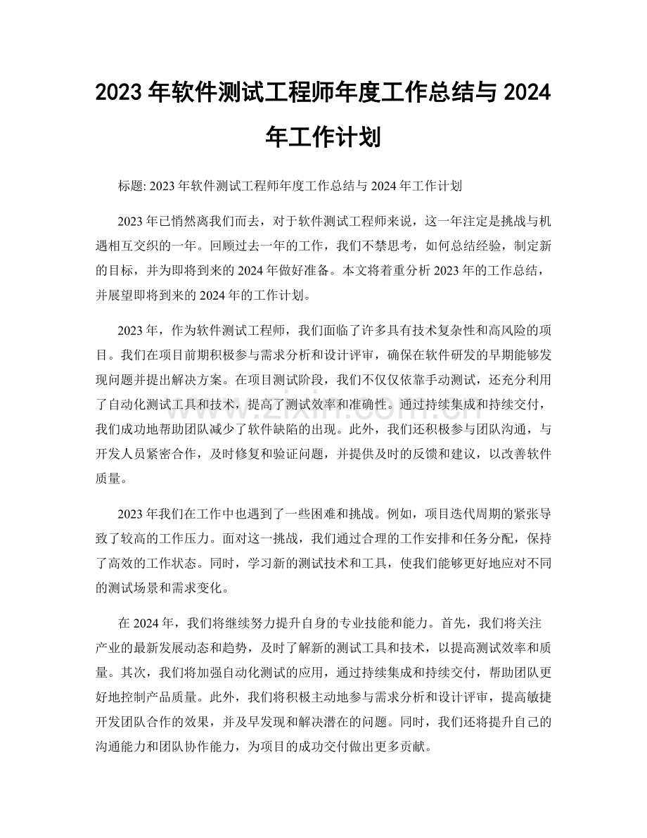 标题: 2023年软件测试工程师年度工作总结与2024年工作计划