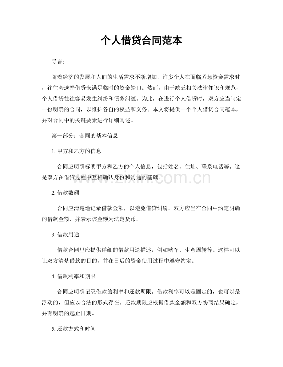 个人借贷合同的制定是保障借贷双方权益的重要措施。通过制定合同,借款双方可以明确自己的权利和义务,并在合同履行过程中避免潜在的纠纷。本文提供了一个个人借贷合同范本,并对合同中的关键要素进行了详细阐述,希望能对借贷双方提供一定的参考和指导。