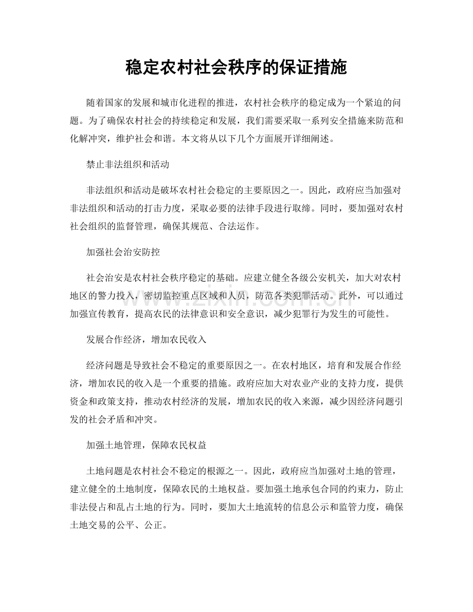 稳定农村社会秩序的保证措施