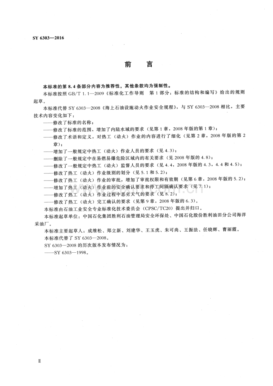 SY 6303-2016 (代替 SY 6303-2008)海洋石油设施热工(动火)作业安全规程.pdf_第2页