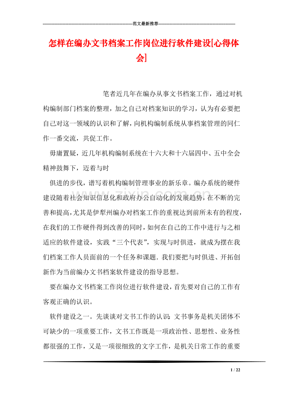 怎样在编办文书档案工作岗位进行软件建设[心得体会]