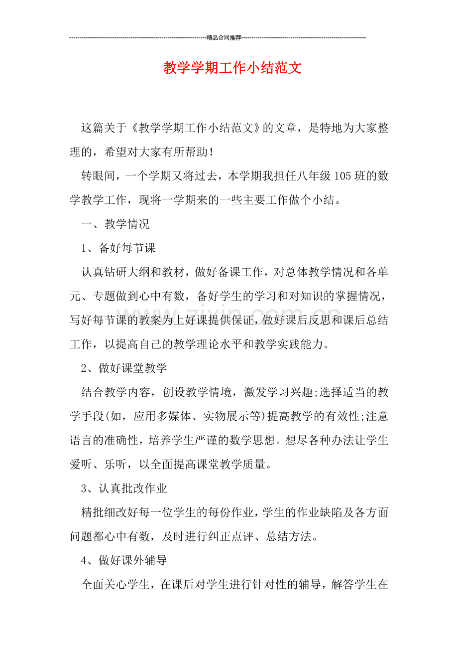 这篇关于《教学学期工作小结范文》的文章,是特地为大家整理的,希望对大家有所帮助!