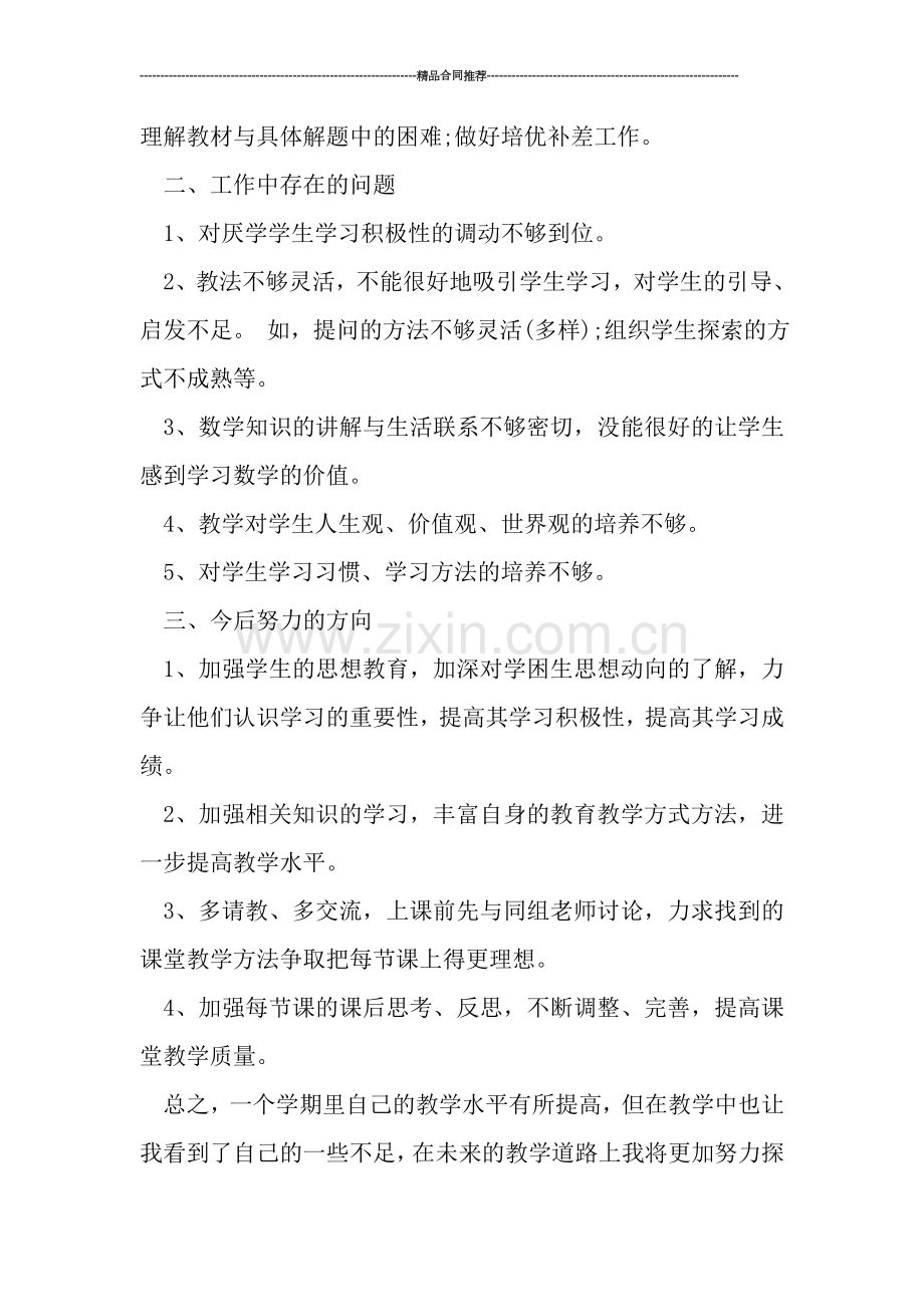 总之,一个学期里自己的教学水平有所提高,但在教学中也让我看到了自己的一些不足,在未来的教学道路上我将更加努力探索好的教学方法,做好教学工作。让每位学生都有所进步。