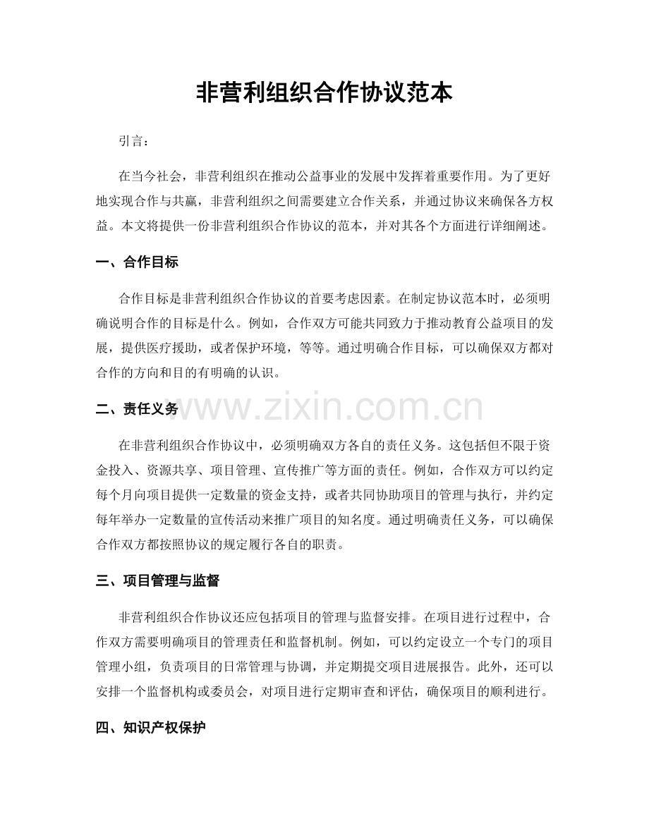 在当今社会,非营利组织在推动公益事业的发展中发挥着重要作用。为了更好地实现合作与共赢,非营利组织之间需要建立合作关系,并通过协议来确保各方权益。本文将提供一份非营利组织合作协议的范本,并对其各个方面进行详细阐述。
