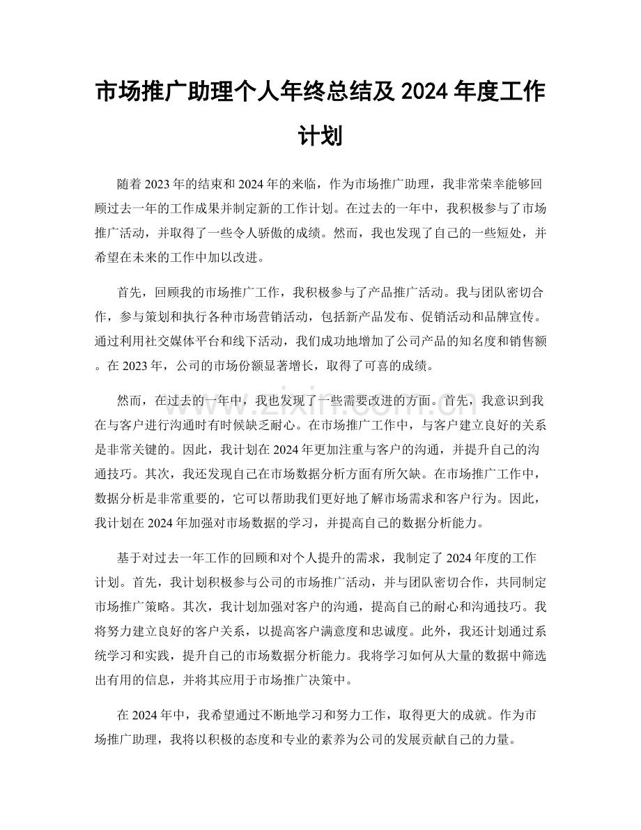 在2024年中,我希望通过不断地学习和努力工作,取得更大的成就。作为市场推广助理,我将以积极的态度和专业的素养为公司的发展贡献自己的力量。