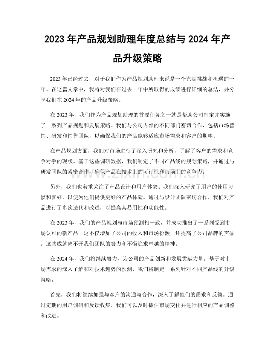 2023年产品规划助理年度总结与2024年产品升级策略