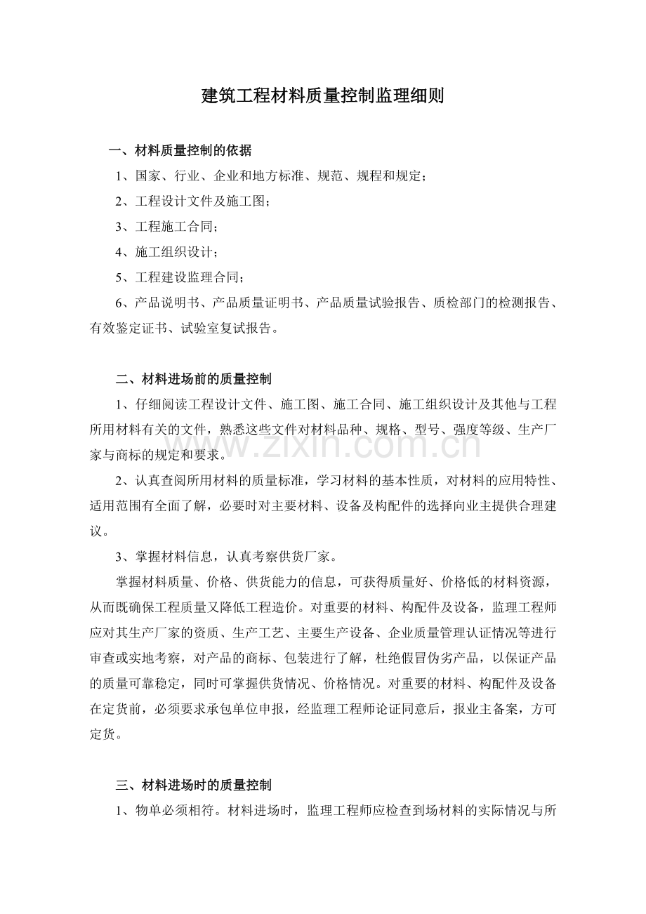 建筑工程材料质量控制监理细则
