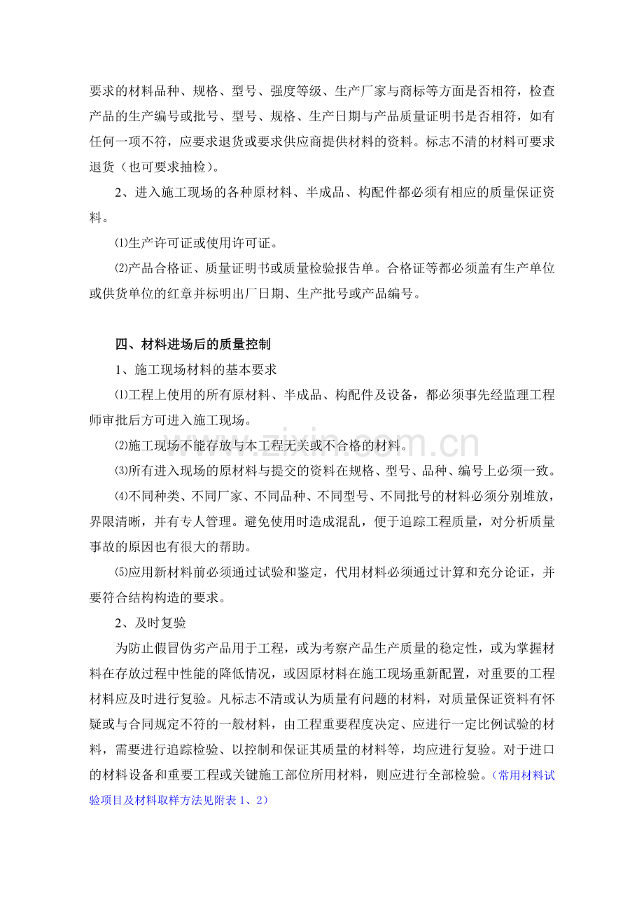 四、材料进场后的质量控制