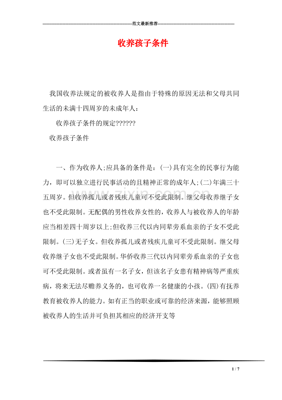 一、作为收养人;应具备的条件是:(一)具有完全的民事行为能力,即可以独立进行民事活动的且精神正常的成年人;(二)年满三十五周岁。但收养孤儿或者残疾儿童可不受此限制。继父母收养继子女也不受此限制。无配偶的男性收养女性的,收养人与被收养人的年龄应当相差四十周岁以上;但收养三代以内同辈旁系血亲的子女不受此限制。(三)无子女。但收养孤儿或者残疾儿童可不受此限制。继父母收养继子女也不受此限制。华侨收养三代以内同辈旁系血亲的子女也可不受此限制。或者虽有一名子女,但该名子女患有精神病等严重疾病,将来无法尽赡养义务的,也可收养一名健康的小孩。(四)有抚养教育被收养人的能力。如有正当的职业或可靠的经济来源,能够照顾被收养人的生活并可负担其相应的经济开支等