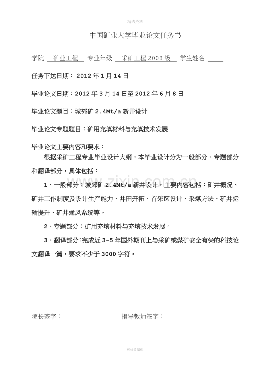 根据采矿工程专业毕业设计大纲,本毕业设计分为一般部分、专题部分和翻译部分,具体包括: