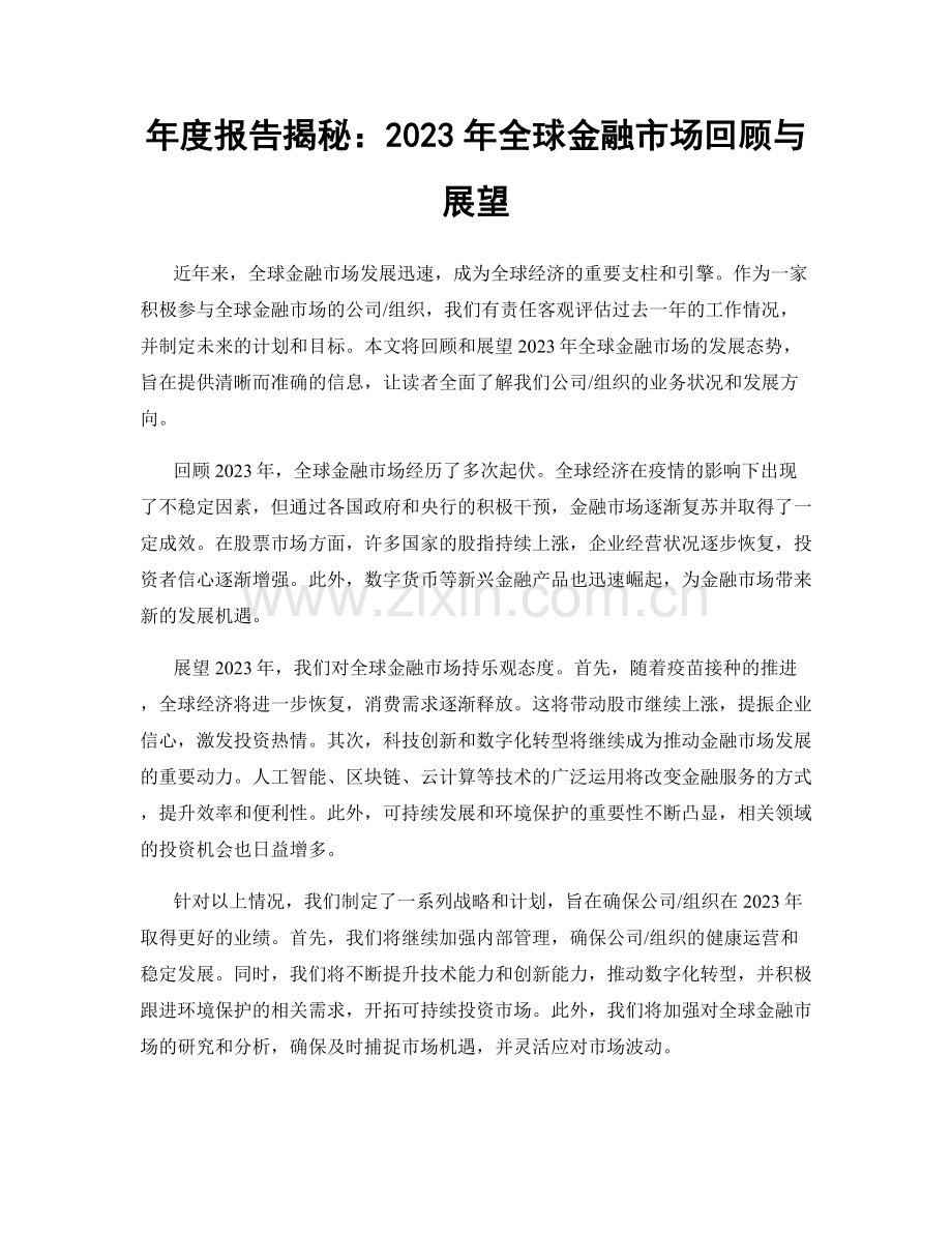 年度报告揭秘:2023年全球金融市场回顾与展望