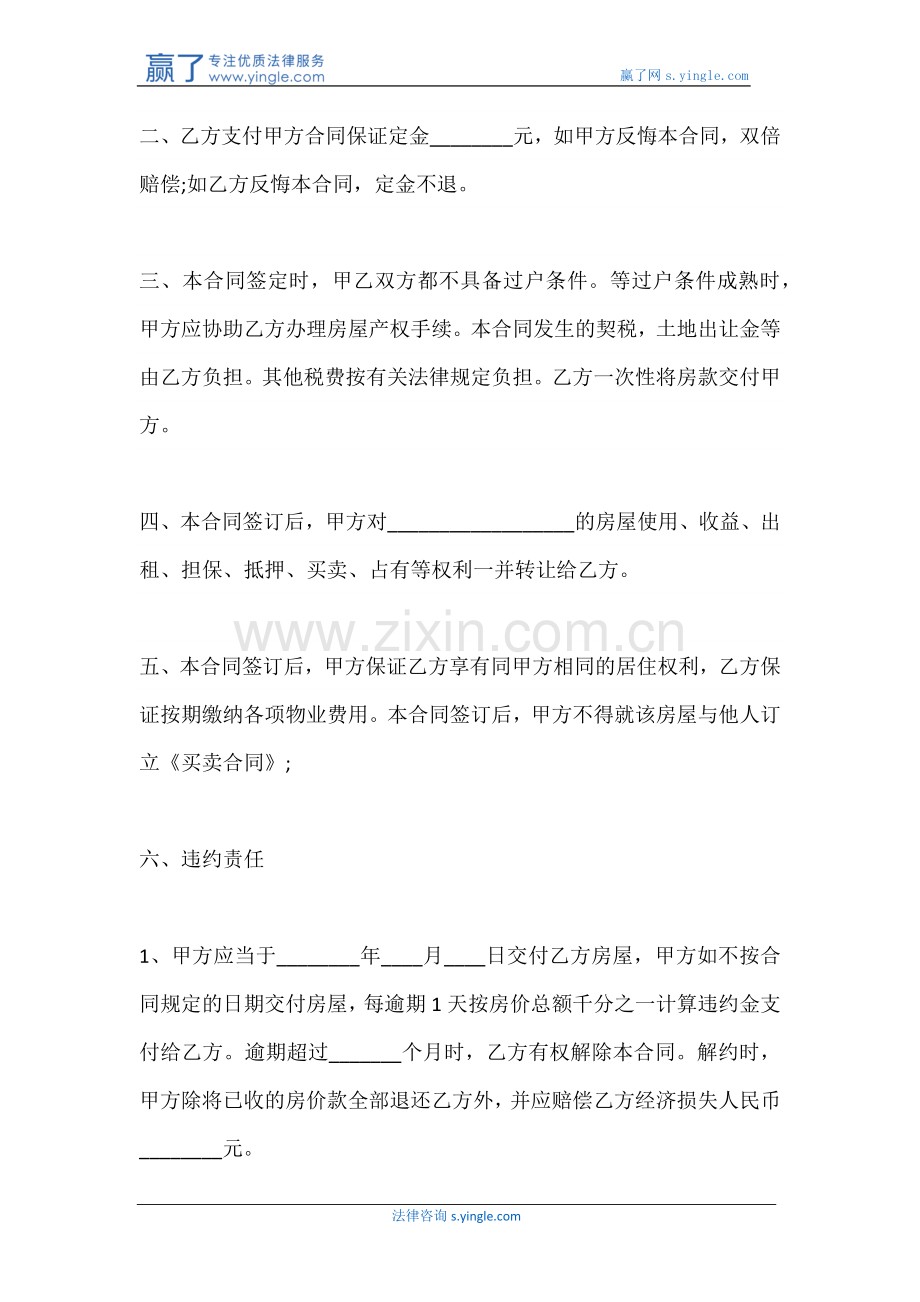 五、本合同签订后,甲方保证乙方享有同甲方相同的居住权利,乙方保证按期缴纳各项物业费用。本合同签订后,甲方不得就该房屋与他人订立《买卖合同》;