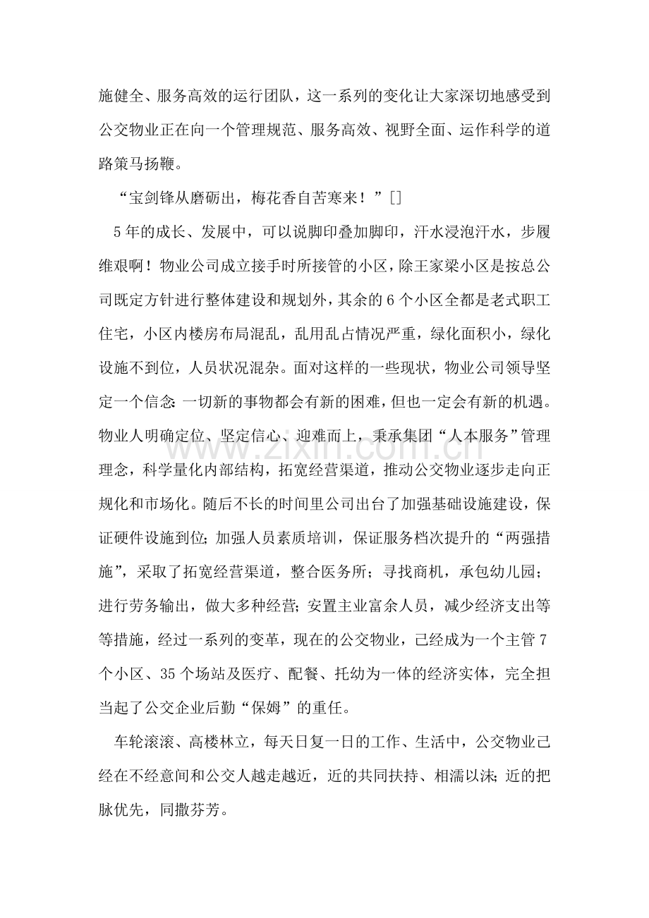 扬帆激进,终就辉煌,我们成长中的公交物业人将继续开拓奋进,为公交明天的发展播种施肥、收获更多的清香!