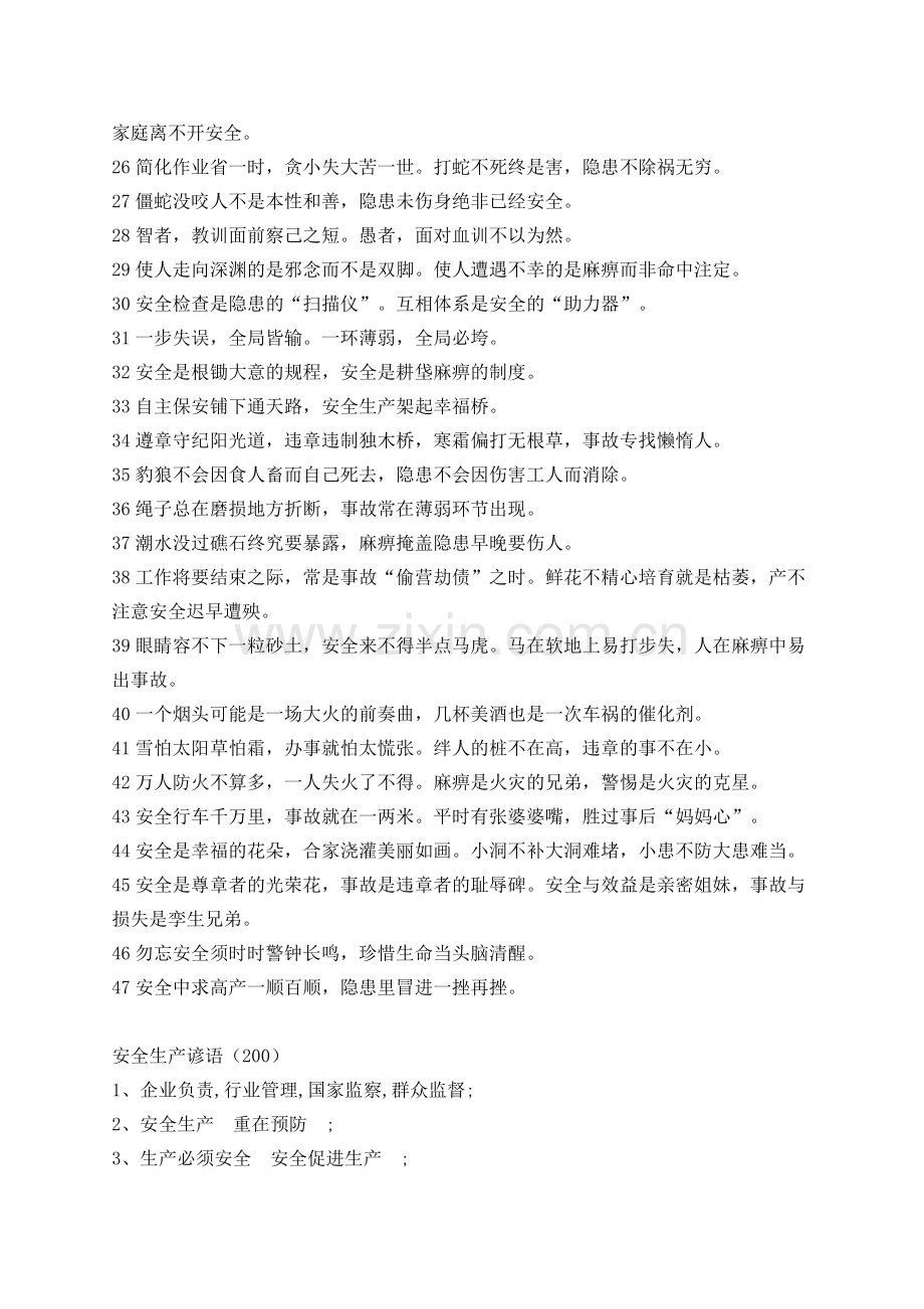 164、苍蝇贪甜死于蜜,作业图快失于急。瞎马乱闯必惹祸,操作马虎必出错。 165、晴带雨伞饱带粮,事故未出宜先防。细小的漏洞不补,事故的洪流难堵。 166、不漏迟,事故临头后悔晚。常添灯草勤加油,常敲警钟勤堵漏。