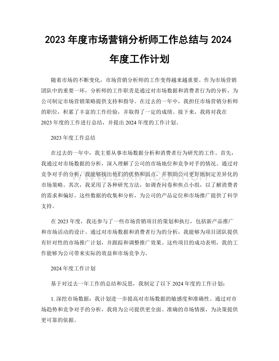 2023年度市场营销分析师工作总结与2024年度工作计划