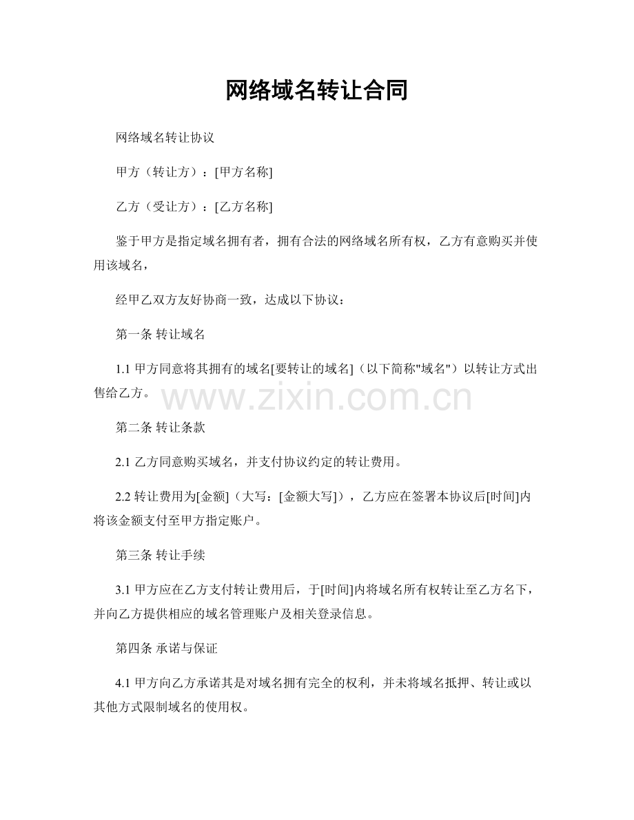 1.1 甲方同意将其拥有的域名[要转让的域名](以下简称"域名")以转让方式出售给乙方。
