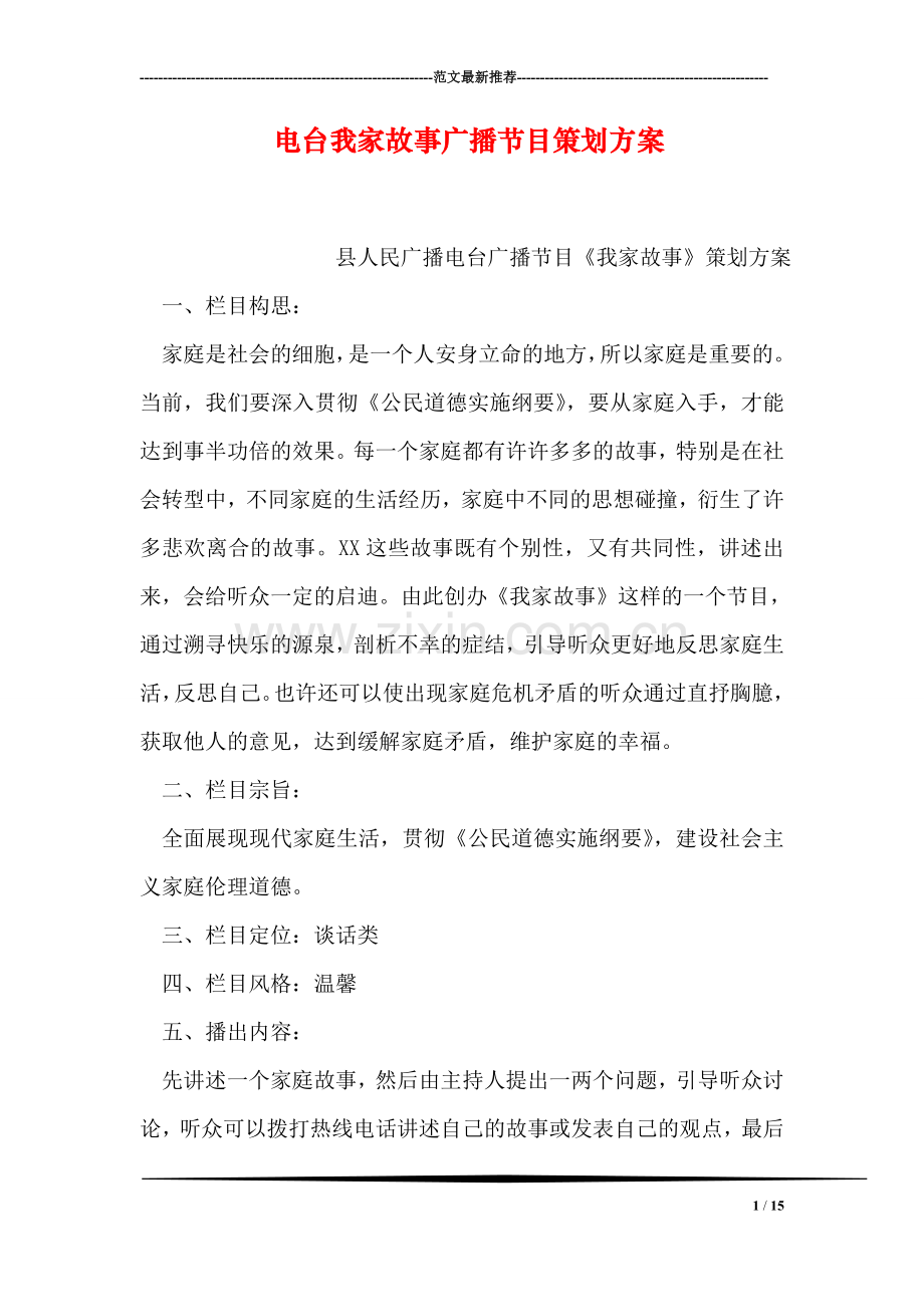 家庭是社会的细胞,是一个人安身立命的地方,所以家庭是重要的。当前,我们要深入贯彻《公民道德实施纲要》,要从家庭入手,才能达到事半功倍的效果。每一个家庭都有许许多多的故事,特别是在社会转型中,不同家庭的生活经历,家庭中不同的思想碰撞,衍生了许多悲欢离合的故事。XX这些故事既有个别性,又有共同性,讲述出来,会给听众一定的启迪。由此创办《我家故事》这样的一个节目,通过溯寻快乐的源泉,剖析不幸的症结,引导听众更好地反思家庭生活,反思自己。也许还可以使出现家庭危机矛盾的听众通过直抒胸臆,获取他人的意见,达到缓解家庭矛盾,维护家庭的幸福。