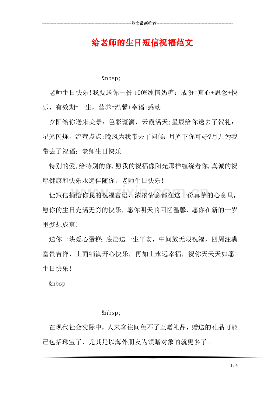 给老师的生日短信祝福范文