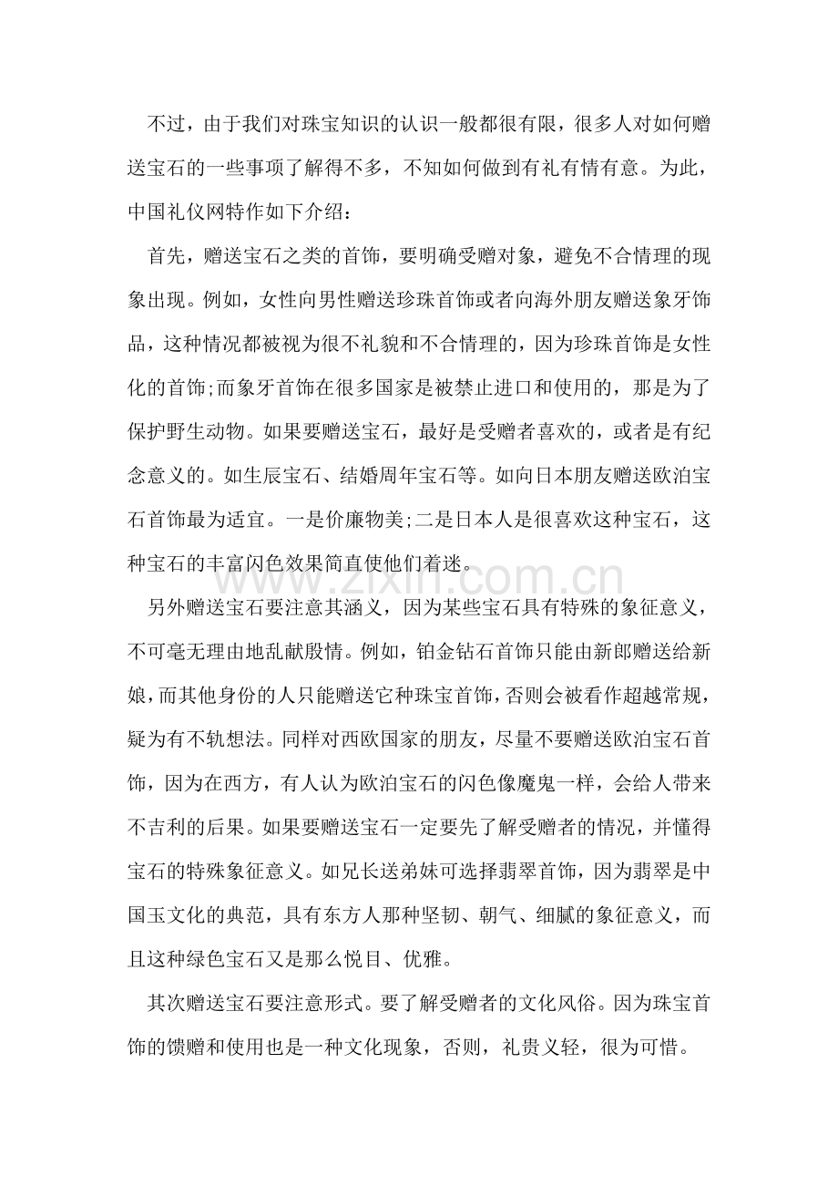 不过,由于我们对珠宝知识的认识一般都很有限,很多人对如何赠送宝石的一些事项了解得不多,不知如何做到有礼有情有意。为此,中国礼仪网特作如下介绍: