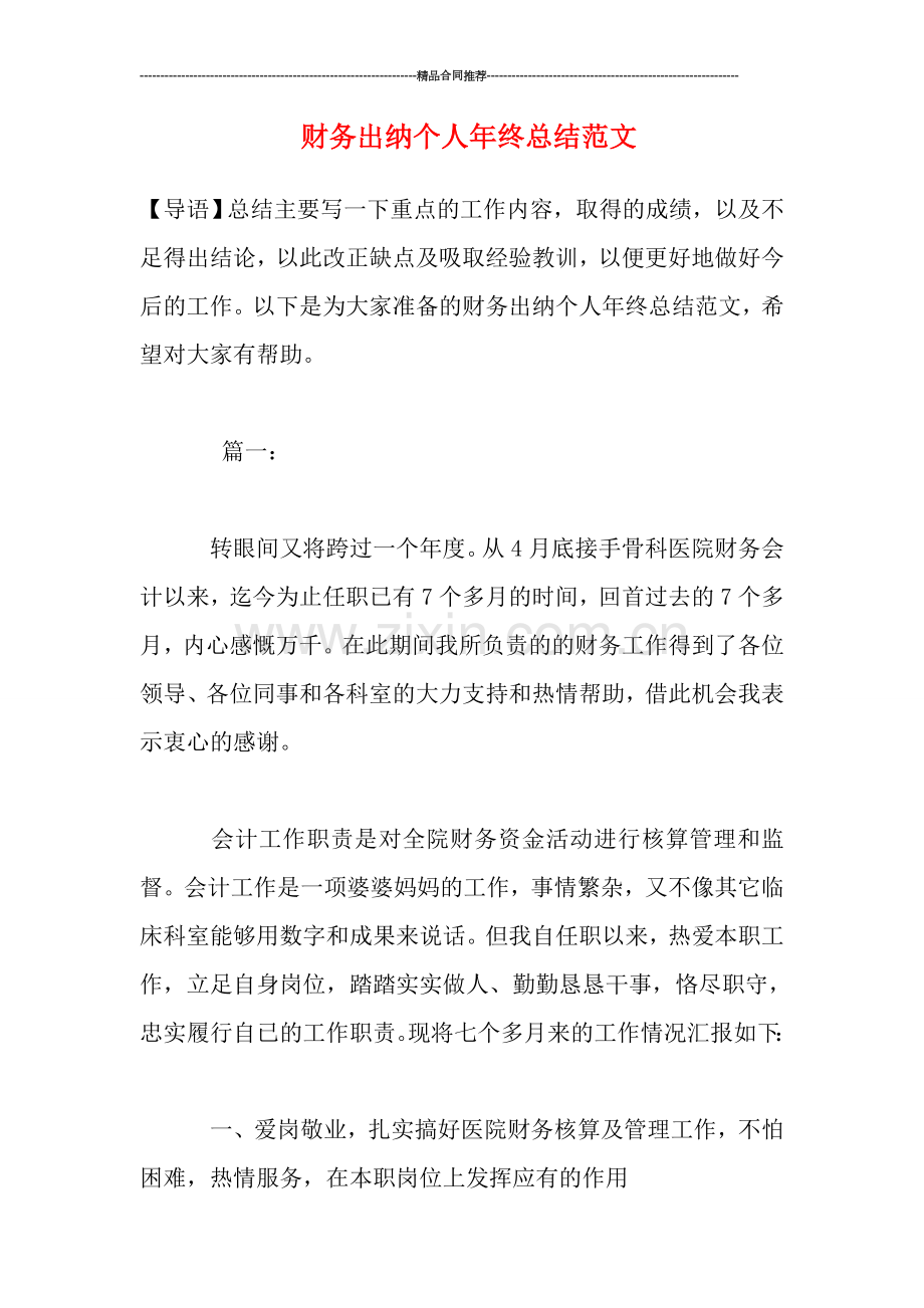 【财务出纳个人年终总结范文】由中国教育考试门户网站提供,更多工作总结最新资料和信息请访问工作总结频道。