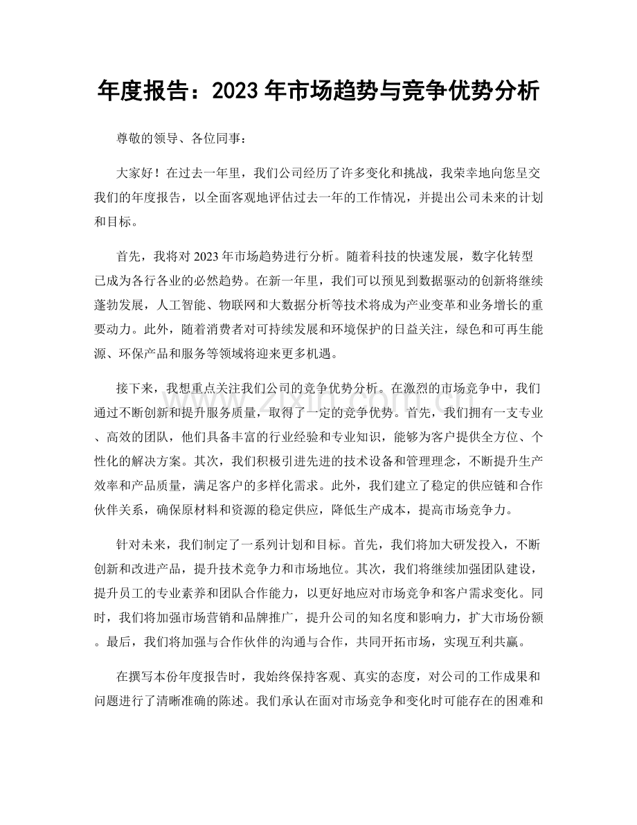 年度报告:2023年市场趋势与竞争优势分析