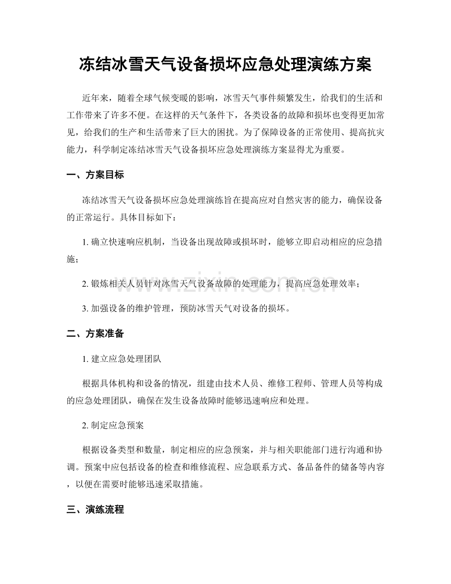 冻结冰雪天气设备损坏应急处理演练旨在提高应对自然灾害的能力,确保设备的正常运行。具体目标如下: