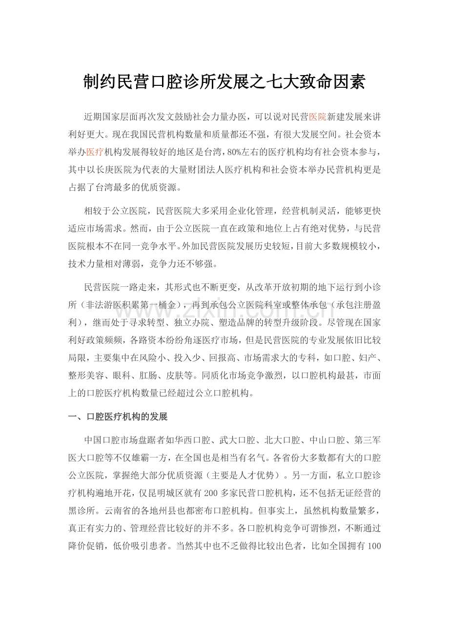 人才是第一瓶颈,管理位列第二。很多民营机构的负责人,多半本身也是医生,或者也就只有自己一个医生,所以在管理上就没有太多关注。稍有几个医生的机构,自己也缺少管理知识,或者角色转换比较困难,部分负责人做医生很优秀,但是管理就显得力不从心,或者不知道如何抓起。涉及多个人的口腔机构必须要有一定的管理,包括完善的规章制度、绩效核算、诊所运营、医疗质量控制、品牌树立、营销方案制定等,缺少科学的指引和系统的思考,将很难形成自己的特色和品牌优势。管理的短板也给民营口腔机构的发展带来了不小的障碍,阻碍医疗资源的更好利用。当然也不乏一些民营医院的管理做得很好,很多优秀的民营机构其成功就是靠管理做到的。说到管理,并不仅是部分民营医院不规范,很多公立医院也很不重视科学管理,无视管理的价值,靠惯性在运转,靠政策在发展,如果这些公立医院推向市场,不一定比现在的民营医院做得好。