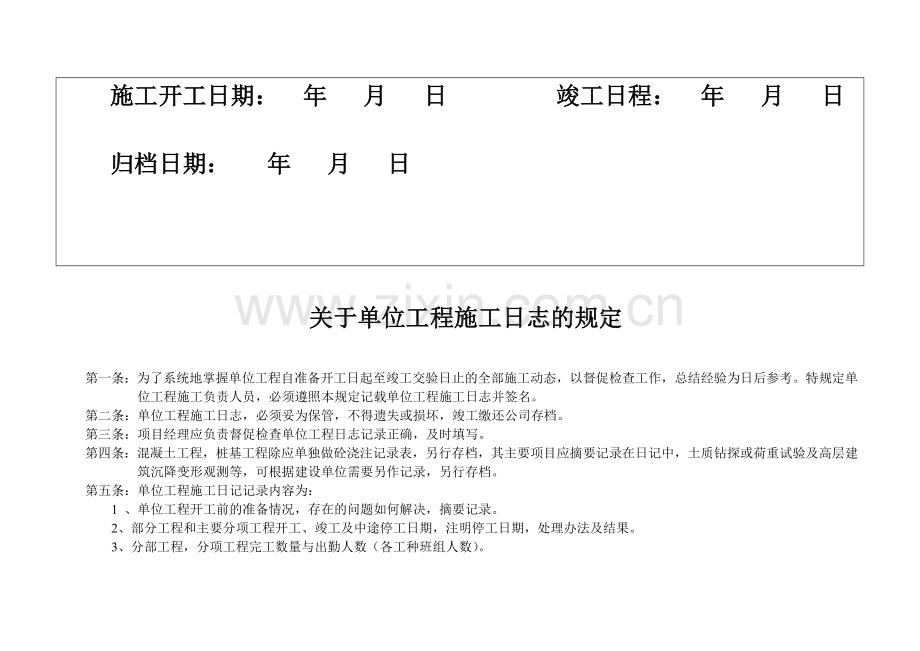 第二条:单位工程施工日志,必须妥为保管,不得遗失或损坏,竣工缴还公司存档。