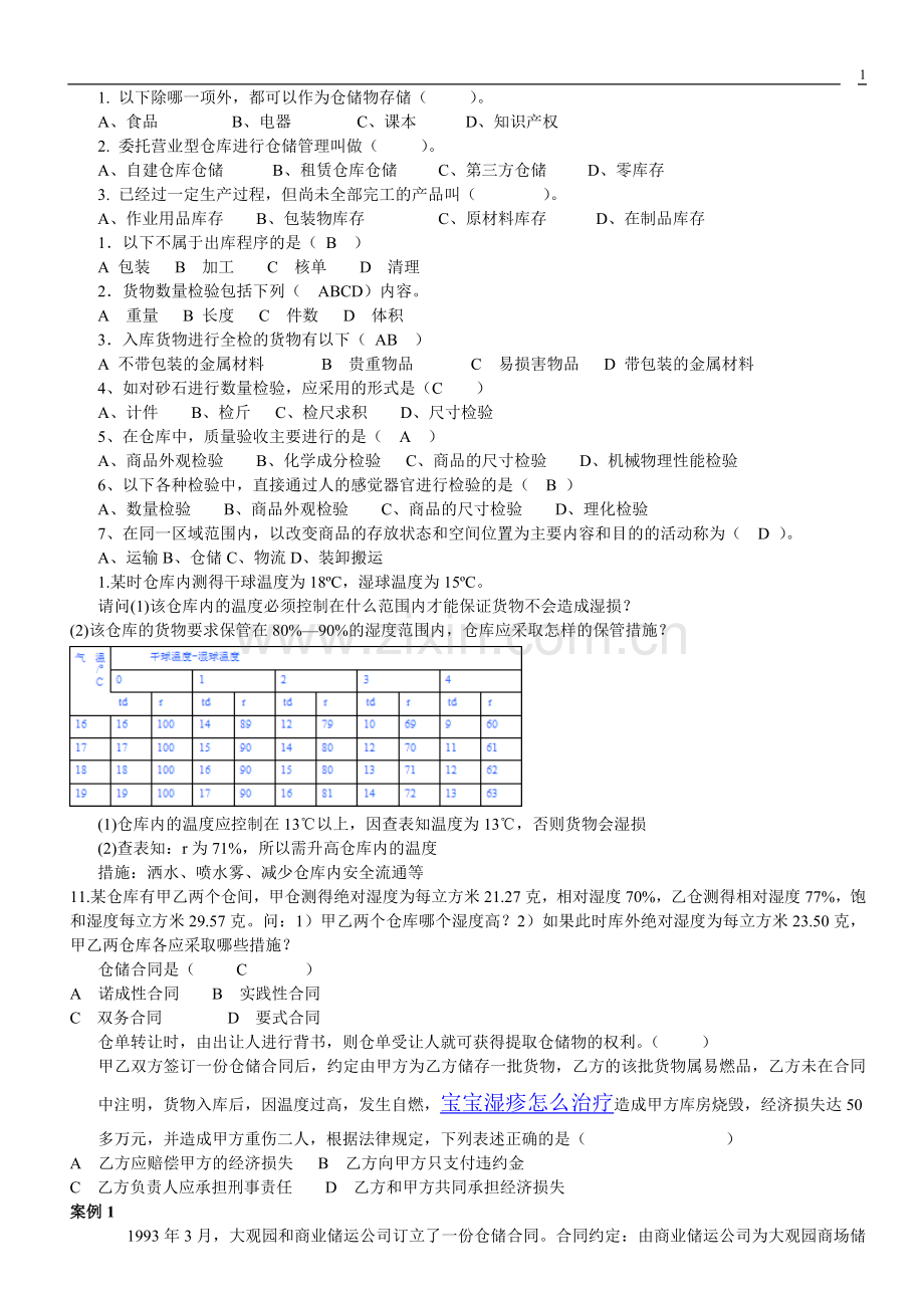 (1)仓库内的温度应控制在13℃以上,因查表知温度为13℃,否则货物会湿损