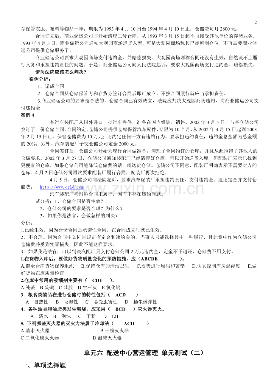 2.仓储合同从仓储保管方和存货方签订合同后即可成立,不按合同履行就应当承担责任。