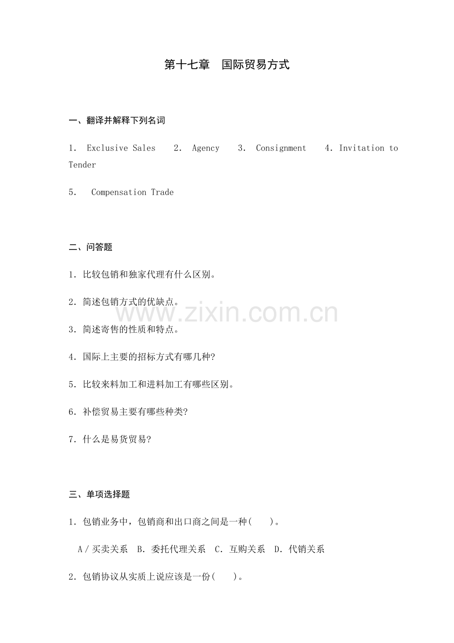 第十七章 国际贸易方式