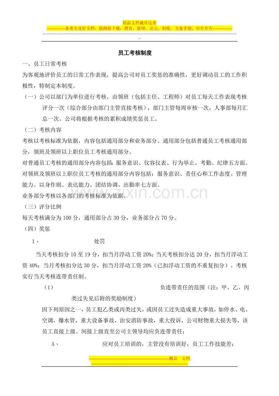 (1) 领班(包括正副主任、工程师)每天对下属员工做考核评分,在员工考核记录表上填写考核分并说明扣分或加分的原因。
